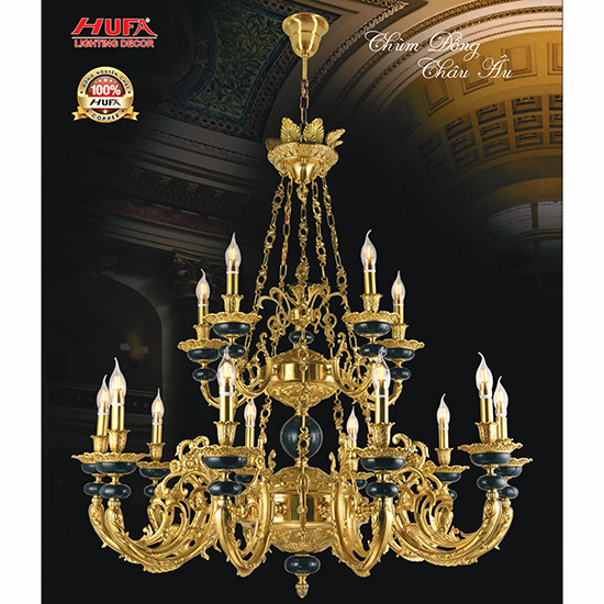Đèn trần chùm đồng HUFA CĐ 1086/10+5 , Đèn chùm cổ điển-Châu âu- màu đồng HUFA CĐ 1086/10+5, ĐÈN CHÙM ĐỒNG CAO CẤP HUFA CĐ CĐ 1086/10+5 Đèn chùm đồng kiểu dáng dạng nến với thân đồng, tai và chao đồng kết hợp với nhau tạo thành 1 bộ đèn tinh tế, đẳng cấp. Đèn chùm đồng kết hợp với các tay đồng dạng nến CĐ 1086/10+5 được sử dụng nhiều để trang trí các phòng khách biệt thự, nhà ở gia đình, nhà phố mang dáng vẻ hiện đại pha chút tân cổ điển. trang trí sảnh ở các khách sạn, tòa nhà, lâu đài, cung điện, nhà thờ.... Thông số kỷ thuật Mã sản phẩm : CĐ 1086/10+5 Thương hiệu : HUFA Điện áp: 220v/50Hz Công suất: 75w-150w Chất liệu: THÂN ĐỒNG NGUYÊN CHẤT Kích thước: Ø1080 x H1100+450 Số tầng: 2 TẦNG Số tay đèn: 15 tay Loại đuôi: E14 * 15 bóng (Sản phẩm chưa bao gồm bóng đèn E14 & E27) Ứng dụng: gắn trang trí sảnh phòng khách, sảnh phòng chính biệt thự, khách sạn, lâu đài, cung điển, chùa, nhà thờ. Nhà phố hiện đại kết hợp tân cổ điển, nhà gỗ.....