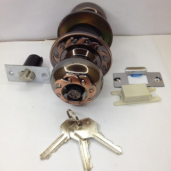 - Kiểu khóa: Khóa tay nắm đồng trơn có khóa phía ngoài, chốt ở trong.
