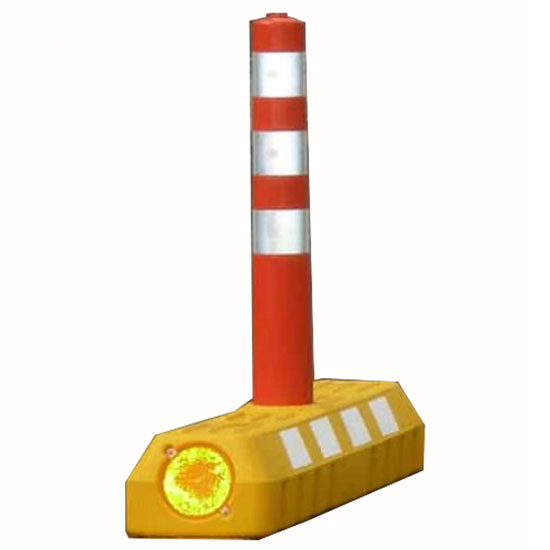 - Đặc tính: + Đế làm từ nhựa PE nhẹ, dễ dàng vận chuyển và triển khai trong thời gian ngắn. + Sản phẩm có màu vàng, đi liền với dải phản quang trắng trên thân đế, tăng độ nhận diện cho tài xế. + Cọc tiêu hình trụ có màng phản quang với độ phản quang cao của thương hiệu Reflomax. - Đặc điểm: + Sản phẩm chỉ có một loại lỗ cắm cọc. + Cấu tạo mảng khối theo dạng lồi – lõm trong thân đế giúp nâng cao khả năng chống chịu va đập. + Loại lớn có lỗ kính trên hai đầu chân đế, giúp tăng phản quang và nhận diện khi lái xe khi di chuyển trời tối. + Dễ dàng bảo dưỡng, duy tu, bảo trì. + Sản phẩm có thể dễ dàng lắp đặt và di chuyển, triển khai trong thời gian ngắn. - Nơi lắp đặt: + Lắp đặt tại đường bộ trong nội đô thành thị, nhằm phân làn đường cho phương tiện, ngăn cản phương tiện quay đầu trái phép. + Lắp đặt trong hầm tòa nhà, lắp đặt trên trục đường dẫn xe lên/xuống dốc hầm.