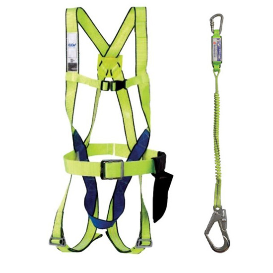Dây đai toàn thân 1 móc nhôm lớn có giảm sốc đàn hồi COVB-206142 Đặc tính kỹ thuật Dây đai toàn thân : - Dây được làm từ nguyên liệu sợi Polyester, các khoá nối và khoá điều chỉnh được làm từ kim loại thép không gỉ. - Kèm theo một móc khóa chữ D sau lưng. - Dây đeo ở vị trí ngồi thoải mái. - Có thể điều chỉnh được dây ở đùi, vai và ngực tạo cảm giác an toàn và thoải mái cho người sử dụng. - Có túi đựng dụng cụ đa năng. - Trên mỗi sản phẩm đều thể hiện rõ các thông số như: Tiêu chuẩn sản xuất, năm sản xuất, vật liệu sản xuất, nhà sản xuất . . . - Trọng lượng dây: 0.82 kg Dây treo giảm chấn 1 móc nhôm to COV-3000103-AL: - Lực phá hủy tối đa: 22 KN - Thời gian sử dụng: 5 năm - Tải trọng: 1 người - Móc cứu nạn - Kích cỡ: 1,8 mét - Trọng lượng: 1,28 kg - Khóa móc tại vị trí giảm chấn: Khóa móc 23 KN - Khóa móc vào điểm cố định tại 2 đầu: Khóa H-157-GR, nhôm - Chất liệu: Nhôm, polyester - Chất liệu dây: Polyester -Tiêu chuẩn: AS/NZS 1891.1:2007 - Thương hiệu : COV/ Hàn Quốc - Xuất xứ : Việt Nam