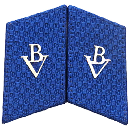 Phù hiệu áo bảo vệ theo thông tư 08 Cấu tạo: Phù hiệu hình thoi, bên trong có cốt nhựa, tâm giữa phù hiệu có chữ “BV” bằng kim loại, phía sau phù hiệu có ghim để cài trên đầu cổ áo. Màu sắc: Nền phù hiệu màu xanh lam, chữ “BV” màu trắng bạc.