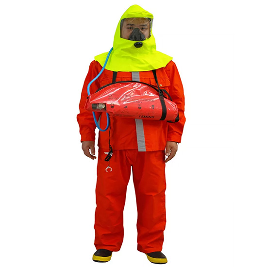 | Mũ trùm (Hood) | Làm bằng vật liệu chống cháy, chịu nhiệt, che kín đầu và cổ. Có mặt nạ trong suốt giúp duy trì tầm nhìn rộng khi thoát hiểm. |