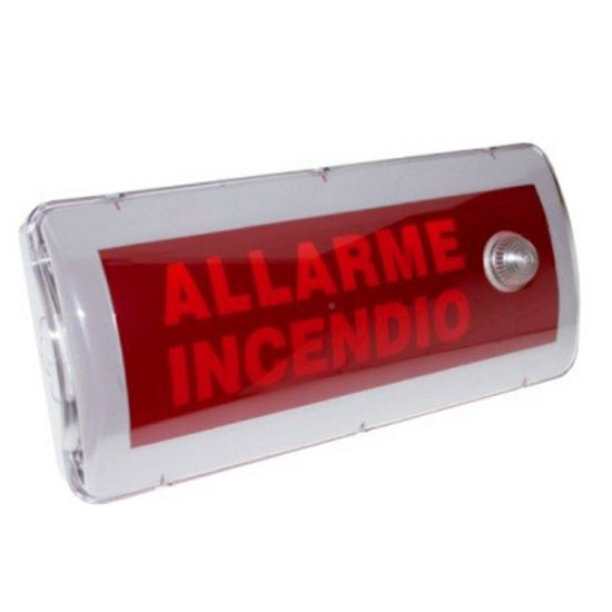 Bảng chỉ thị cảnh báo kết hợp đèn còi. Sử dụng nguồn 24 VDC, dòng tiêu thụ thấp 55 mA. Âm lượng tối đa: 91 dB. Đèn LED độ sáng cao. Vỏ hộp màu trắng làm nhựa polycacbon mặt trước trong suốt, IP21. Hiển thị cảnh báo "FIRE ALARM".
