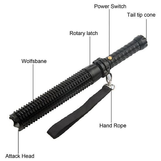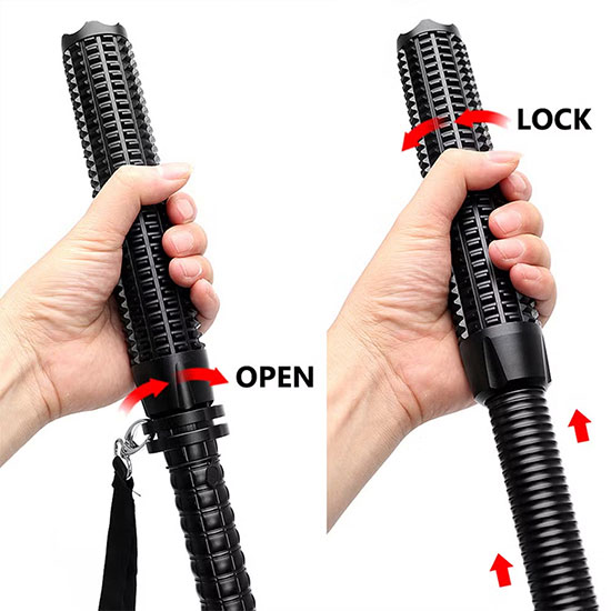 - Thiết kế dạng gậy baton chiến thuật: Phần thân dài và chắc chắn, có thể sử dụng như vũ khí tự vệ khi cần thiết.