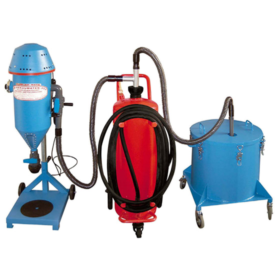 Thành phần của máy này với các phụ kiện đủ để đổ và đổ đầy tất cả các bình chữa cháy xách tay từ 1 kg đến 12 kg và các thiết bị chữa cháy 50 kg có thể di chuyển thêm. Khi sử dụng bể chứa bột lớn hơn, có thể đổ và đổ đầy các thiết bị chữa cháy lên tới 250 kg.