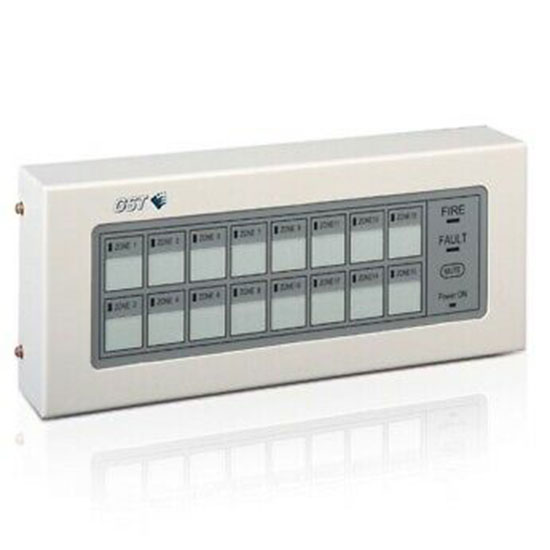 Bảng hiển thị phụ báo cháy GST-RP16, Bảng hiển thị 16 Zone báo cháy và báo lỗi GST-RP16, Bộ hiển thị phụ GST-RP16 kết nối qua đường truyền RS-485 Đặc trưng - Dùng cho tủ GST-102-104-108-116 - Điện áp lấy trực tiếp từ tủ trung tâm - Bộ hiện thị phụ GST-RP-16, sử dụng cho hệ thống báo cháy dạng vùng, dùng để hiển thị thông tin hệ thống báo cháy, được sử dụng trong các tòa nhà, trung tâm điều khiển báo cháy. - Khi tủ trung tâm báo cháy nhân tín hiệu cháy, nó sẽ báo động và gởi tín hiệu đỏ đèn bộ hiển thị GST-RP-16, bộ hiện thị sẽ hiển thị vùng cháy và phát âm thanh cảnh báo. Thông số kỷ thuật - Mã sản phẩm : GST-RP16 - Thương hiệu : GST - Xuất xứ : Trung Quốc - Điện áp vận hành: 18VDC- 28VDC. - Dòng vận hành tĩnh: 12mA, khi có báo động: 60mA. - Hiển thị 16 vùng cảnh báo. 2 tín hiệu báo lỗi. - Sử dụng trong nhà. - Kích thước: 280mm x 110mm x 46mm. - Nhiệt độ môi trường: 0oC + 40oC - Độ ẩm tương đối: ≤95% không ngưng tụ Hướng dẫn kết nối bảng hiển thị phụ báo cháy GST GST-RP16 – Bảng hiển thị phụ GST-RP16 dùng để kết nối với trung tâm báo cháy 16 kênh để hiển thị trình trạng báo cháy và báo lỗi của các zone. – Nhược điểm của bảng hiển thị phụ này là nếu zone nào muốn hiển thị thì phải kéo một sợi dây tín hiệu về bảng hiển thị phụ chứ nó không hoạt động qua cổng RS485 như các bảng hiển thị phụ của các hệ thống báo cháy khác. Vì vậy mà số lượng dây sử dụng nhiều hơn rất nhiều so với các hệ thống báo cháy khác. Sơ đồ kết nối dây từ tủ báo cháy đến bảng hiển thị phụ GST