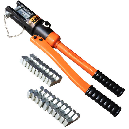 - Bộ kìm bấm đầu cose thủy lực 16-300mm2, hiệu Century, sản xuất tại Trung Quốc, thân kìm được chế tạo bằng thép tốt, giúp chịu được áp lực cao, giúp tăng lực ép tối đa lên đến 16 tấn.