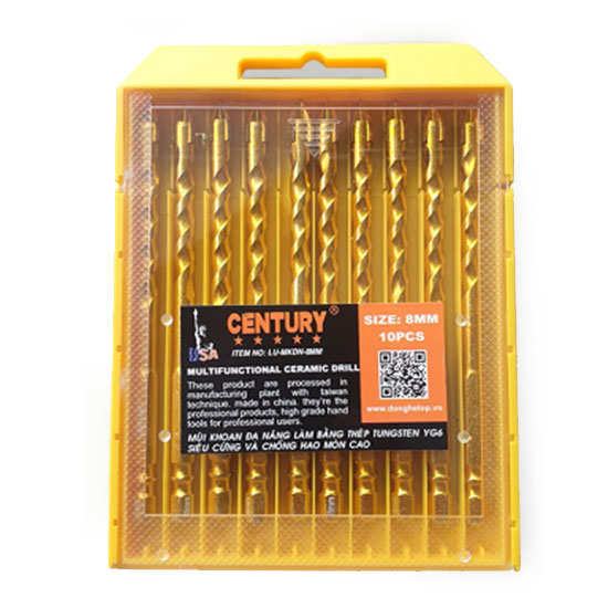 Bộ 10 mũi khoan (gạch men, thủy tinh, gỗ, đá cẩm thạch, đá granit) 4 cạnh 8mm Century LU-MKDN-8