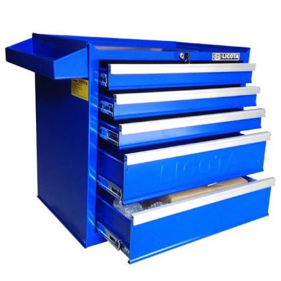 Bảo quản tiện lợi Kích thước của các giá cho phép bạn dễ dàng đặt và lấy các đồ vật, và đáy hộp được trang bị thảm polyurethane chống dầu, đảm bảo sự cố định đáng tin cậy của dụng cụ. Mỗi ngăn kéo được đánh dấu bằng một loại băng đặc biệt để dễ dàng điều hướng. Ngoài ra, mặt bàn và tay nắm bên có thêm các hốc để đựng dụng cụ và móc cài, tăng tính tiện lợi trong công việc. Bảo vệ chống lại sự truy cập trái phép Xe đẩy dụng cụ được trang bị khóa trung tâm giúp khóa mở tất cả các kệ. Thông số kĩ thuật Xe đẩy dụng cụ 5 ngăn màu xanh lam LICOTA AWX-2602 - Mã sản phẩm : AWX-2602 - Thương hiệu: LICOTA - Xuất xứ : Đài Loan - Hướng dẫn về ổ trục - Mặt bàn bằng nhựa - Kích thước (WxDxH): 670 x 460 x 654 mm - Kích thước có bánh xe (WxDxH): 670 x 460 x 777 mm - Kích thước ngăn nhỏ (WxDxH): 576 x 380 x 75 mm - Kích thước ngăn lớn (WxDxH): 576 x 380 x 154 mm - Số lượng trong một gói: 1 cái - Khối lượng tịnh: 50.5 kg; - Tổng trọng lượng: 57.5 kg