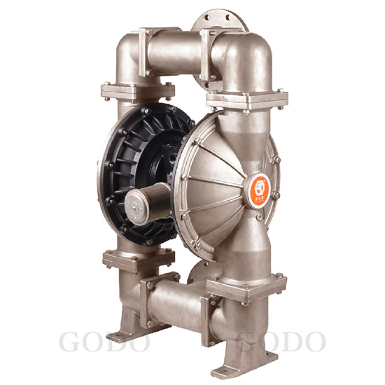 Máy bơm màng nhựa PTFE thân Inox316 GODO QBY3-125, Bơm màng khí nén thân Inox316 GODO QBY3-125Đặc điểm bơm màng GODO QBY3-125- Bơm màng GODO QBY3-125 có nhiều ưu điểm vượt trội so với các dòng sản phẩm khác trên thị trường như:- Bơm hoạt động bằng khí nén không cần kết nối với điện đảm bảo an toàn chấy nổ hoạt động được trong môi trường dễ cháy nổ, có thể bơm các loại dung môi dễ cháy, xăng dầu- Bơm sẽ tự ngừng khi bị quá tải áp lực bơm, tự hoạt động lại khi áp suất trở lại bình thường đảm bảo an toàn bơm- Van khí được được thiết kế với độ chính xác cao, hoạt động ổn định, có thể làm việc trong điều kiện áp suất khí quyển thấp- Có khả năng bơm nhiều loại chất bơm có tính chất khác nhau, chất có lẫn dị vật, hạt rắn và khả năng tự hút tốtHình ảnh mô tả nguyên lý hoạt động của máy bơm màng rung