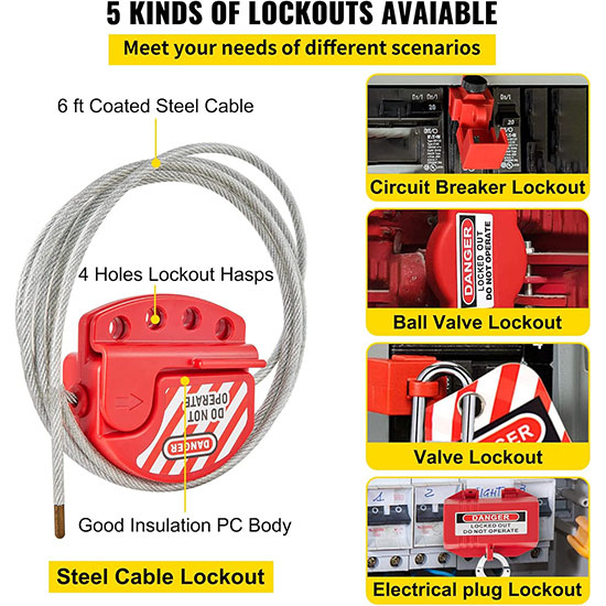 | Khóa dây cáp thép đa điểm (6ft) | 1 chiếc | Dùng cho thiết bị không có điểm ngắt cụ thể hoặc nhiều điểm cùng lúc |