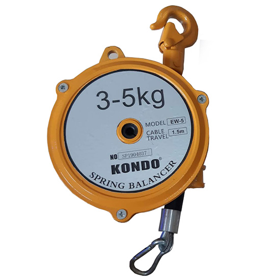 Pa lăng cân bằng tải trọng 9-15 kg Kondo EW-15, Cân bằng lò xo trọng lượng 9-15 kg KONDO EW-15, PA LĂNG CÁP TREO CÂN BẰNG 9-15 kg KONDO EW-15 Pa lăng cân bằng là thiết bị hỗ trợ treo máy móc và thiết bị. Vì sức căng của lò xo, trọng lượng của thiết bị giảm xuống gần bằng không, bạn có thể kiểm soát vị trí của thiết bị dễ dàng hơn. Ngoài ra, thiết bị còn có thể cân bằng cố định tại một độ cao bất kỳ.