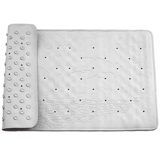 | Tính Thẩm mỹ Cao | Họa tiết biển cả tinh tế (Ocean Scene) với màu Trắng (White) tươi mới, sạch sẽ. Thảm WG-858 không chỉ an toàn mà còn là một phần trang trí độc đáo, nâng cao vẻ đẹp tổng thể của phòng tắm. | Thảm nhà tắm cao su cao cấp |